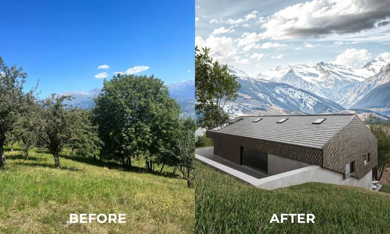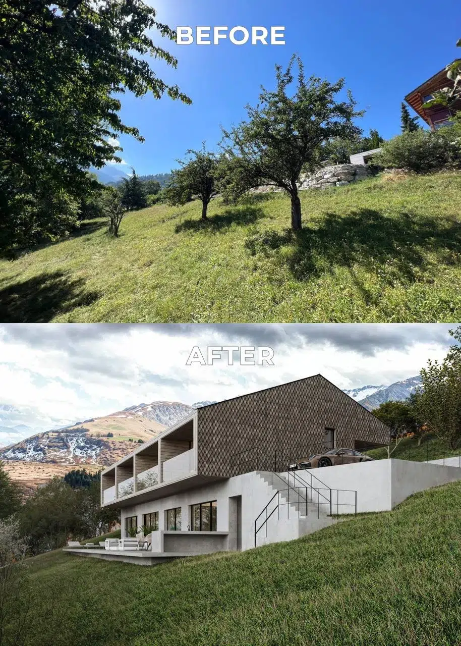 La maison est située dans la ville de Nendaz, dans le canton du Valais, à proximité de l'une des plus belles et des plus populaires stations de ski de Suisse. La pente raide sur laquelle se trouve la maison offre des vues à couper le souffle sur le paysage montagneux.