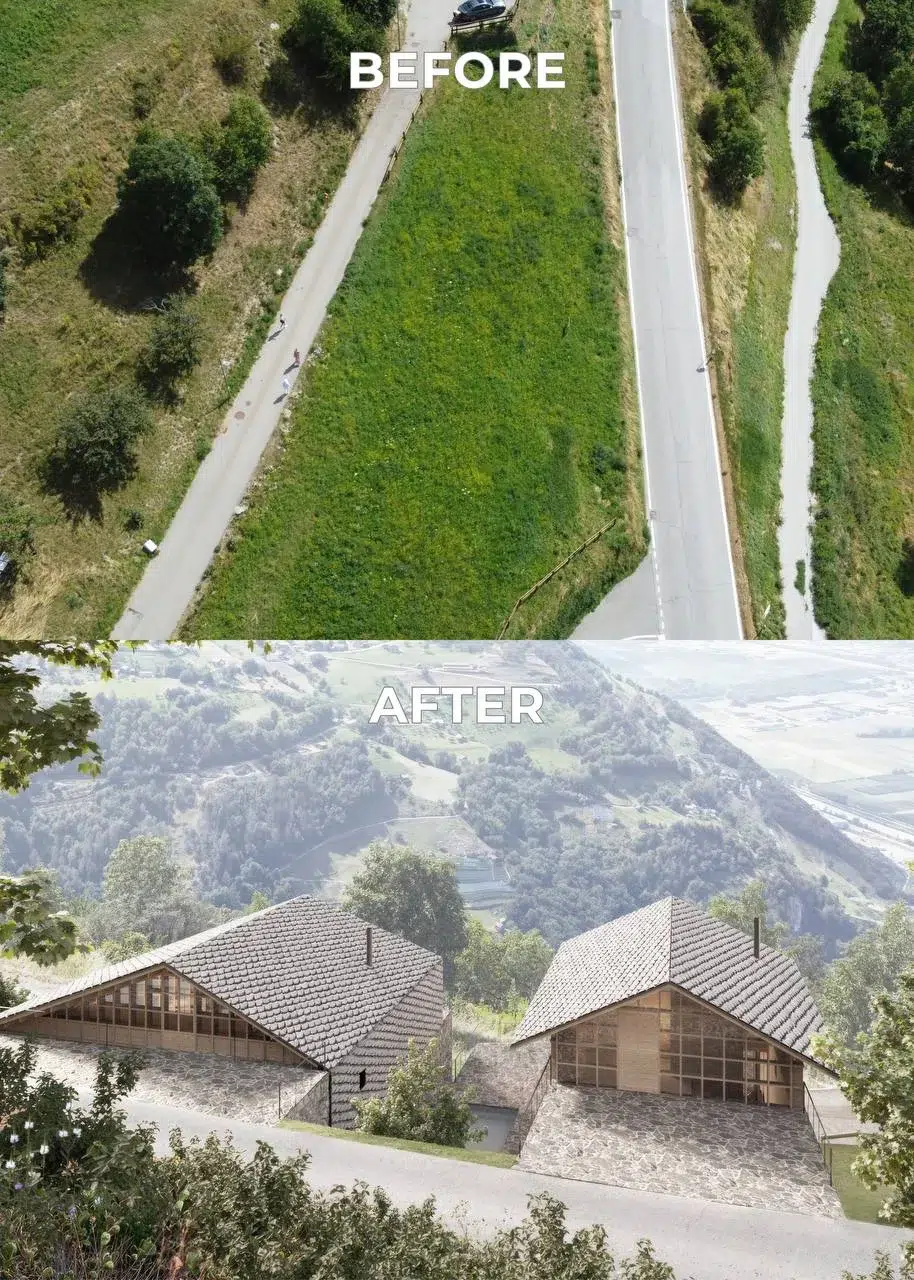 Un projet immobilier unique et expérimental : Chalet S et Chalet M présentent deux chalets distinctifs et créatifs destinés à la vente. Le projet combine des solutions architecturales non conventionnelles avec une identité visuelle forte, faisant de chaque chalet une déclaration d'innovation et d'élégance.