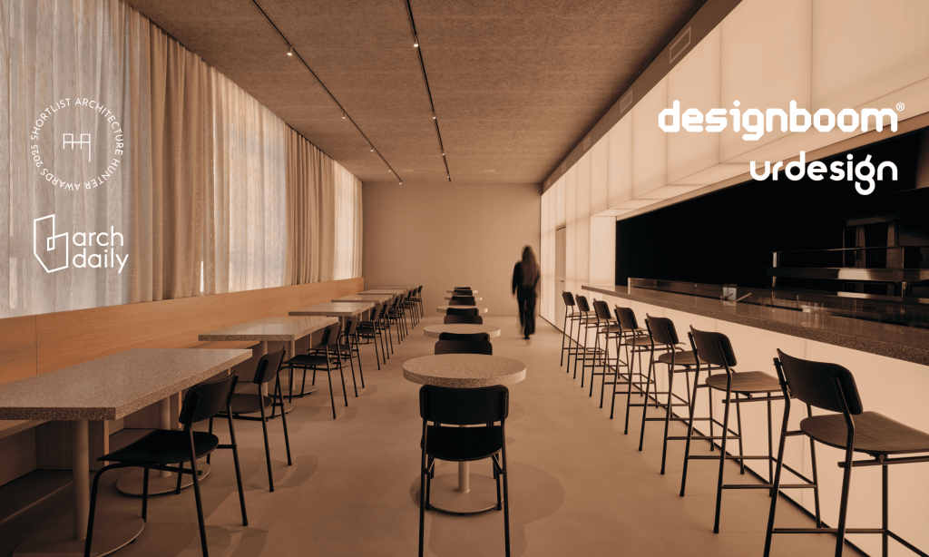 Le design met l'accent sur la neutralité et la flexibilité, offrant un cadre calme et adaptable qui permet aux clients de se concentrer sur l'expérience culinaire. Les accents du mobilier sont noirs, et les tables et le comptoir du bar sont fabriqués à partir de mélanges acryliques hétérogènes, créant un effet de surface « lâche » subtil. De grandes ouvertures et des surfaces métalliques réfléchissantes interagissent avec l'éclairage LED pour façonner l'atmosphère tout au long de la journée.