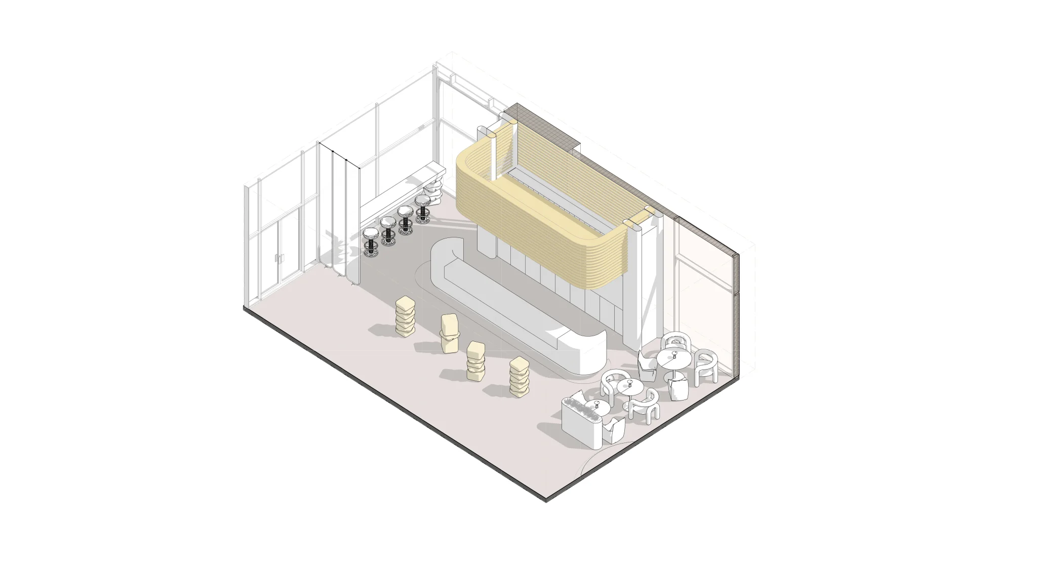 Situé dans un pays arabe, le concept s'inspire du paysage environnant. La base intérieure arbore des teintes douces et sableuses qui se fondent naturellement avec l'extérieur. Lorsque l'éclairage est éteint, l'espace est calme et chaleureux ; lorsqu'il est allumé, il se transforme en un environnement vivant et coloré qui s'anime la nuit, changeant d'atmosphère tout comme le désert au coucher du soleil.