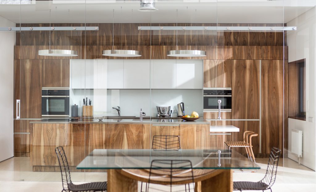 Pour ceux qui aiment l'espace et beaucoup de lumière du jour. Cette cuisine est conçue par Alexander Pomintchouk de Kharkiv, en Ukraine, spécialisé dans la création des intérieurs d’une maison privée dans un style moderne. Il a rassemblé dans un même espace des constructions en bois, en verre et en métal pour construire une cuisine confortable et hautement fonctionnelle. Le minimalisme dans les détails, la couleur blanche comme principale, le marron est un plus et l'accent mis sur les éléments métalliques vous donne une sensation de liberté et de douceur.
