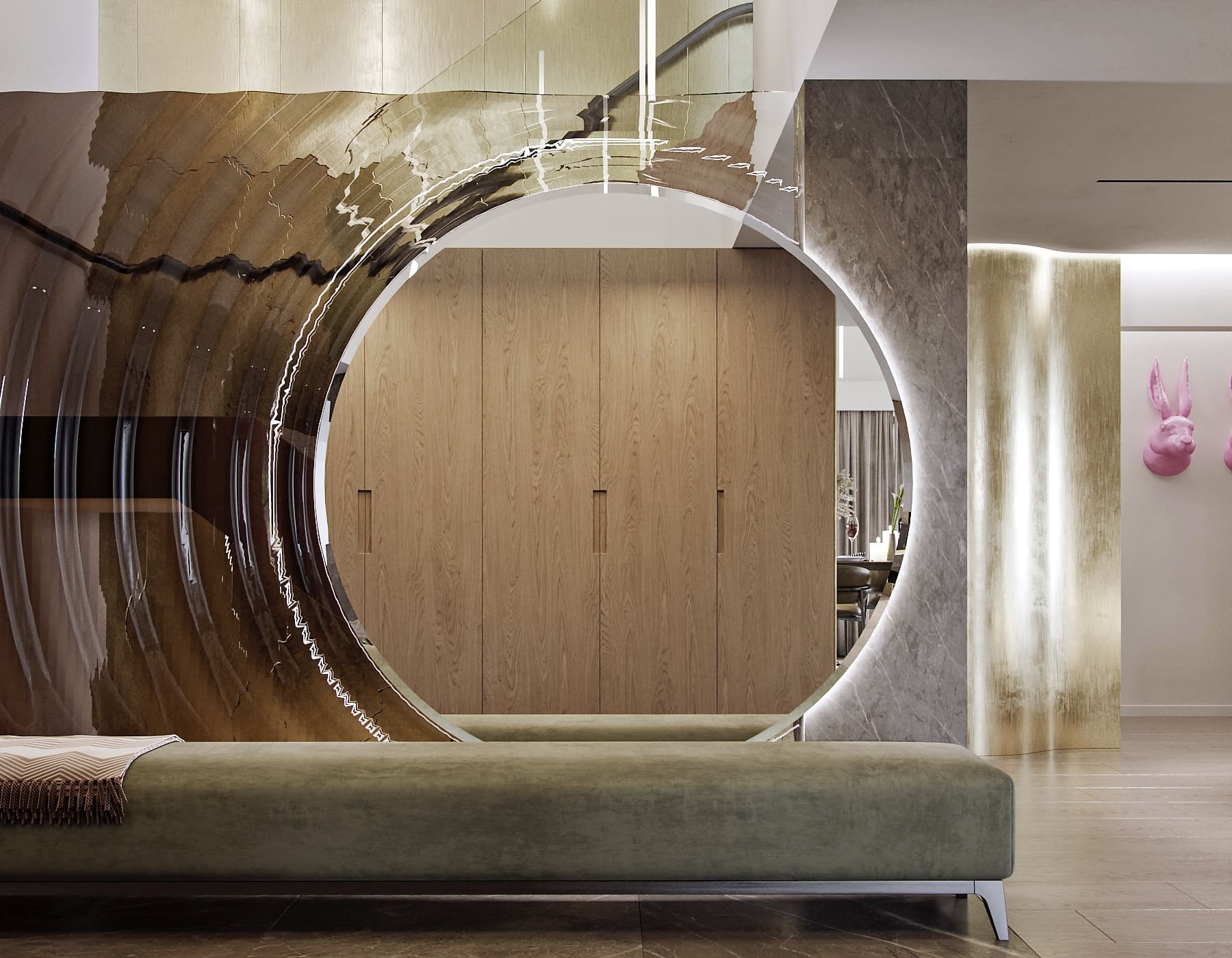 The main concept of the residence on the shores of Lake Geneva is to open up space. Almost every room is oriented towards a picturesque landscape. The connection with the surrounding nature is also conveyed through the use of natural materials, textures and colors. The ergonomics and utilitarian function of the rooms of the house are well thought out and closely intertwined with the effectivity of the natural finishing materials.