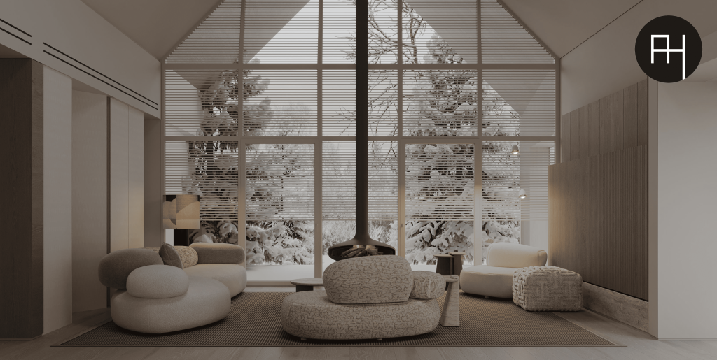 The project is a synergy of architecture and interior, where one space flows smoothly into the other, and everything is combined with the exterior. This is exactly what you need for a perfect weekend home. High ceilings and large windows allow the owners to fully integrate into the surrounding nature. An important task was to create cozy zones in the middle of a large space so that the residents would be comfortable in each of them. Warm light + natural materials + textured, soft fabrics are the main elements to create an atmosphere of happiness.