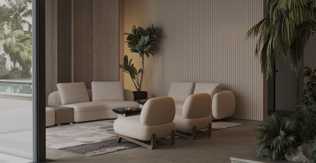 This design philosophy emphasizes simplicity, functionality, and a sense of openness. It's all about creating a space that feels uncluttered and serene, allowing the beauty of the surroundings to shine through. This space is characterized by clean lines, neutral colors, and natural materials, such as wood and stone. But what really sets this interior apart is the indoor garden that is seamlessly integrated into the design. The villa is very open, that's why it was decided to create a harmonious balance between nature and design.